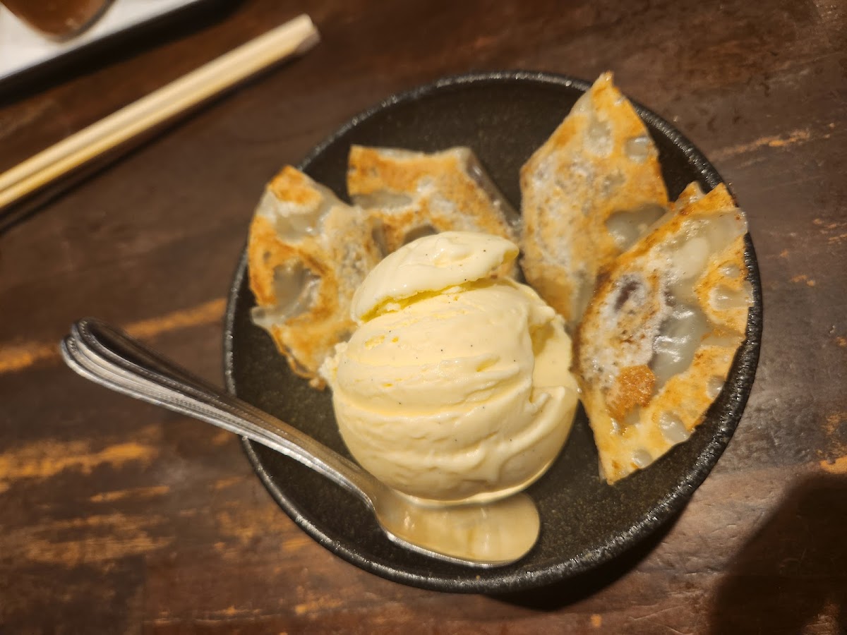 We really enjoyed our meal here. The gyozas were perfectly cooked and full of flavor, and as a nice surprise, they also serve chocolate gyozas for dessert – absolutely delicious! The staff was very friendly and welcoming, which made the experience even better. Definitely worth a visit.